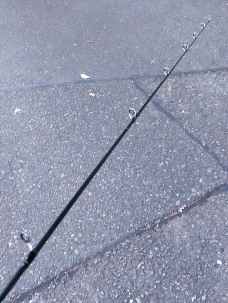 クソみたいな画像で申し訳ないのですが、19バスX 6102LSです。元々持っていたエントリーモデルのバスロッド(しかも当時すでに型落ちでした)なのですが、ティップに敢えてダブルフットのOリングガイドを数点付け直しました。元々のブランクスが高品質なものではないので、穂先の収束があまり良くない、リングも重い、スレッドとエポキシも倍増で重い…