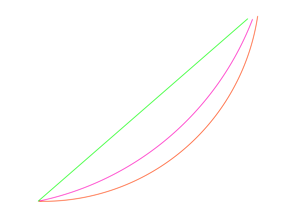 ※もちろん、実際のライン軌道はこんなにきれいな直線ではありません。あくまでも雑な計算です。
